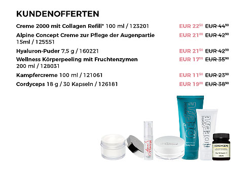 Aktions-Produkte sind generell nur innerhalb des Aktions-Zeitraumes bestellbar. Kundenofferten können immer nur in Verbindung mit einer Bestellung von drei regulären Produkten mitbestellt werden.