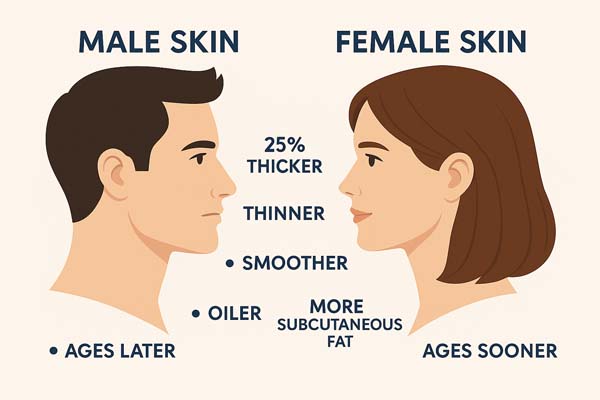 As we age, the collagen fibers in our skin lose elasticity, making the stimulation of skin cells (fibroblasts) through suitable skincare products beneficial – for both men and women alike. These products (such as creams, emulsions, gels, or serums) should be tailored to the individual skin type, since skin characteristics (dry, normal, oily) are independent of gender.