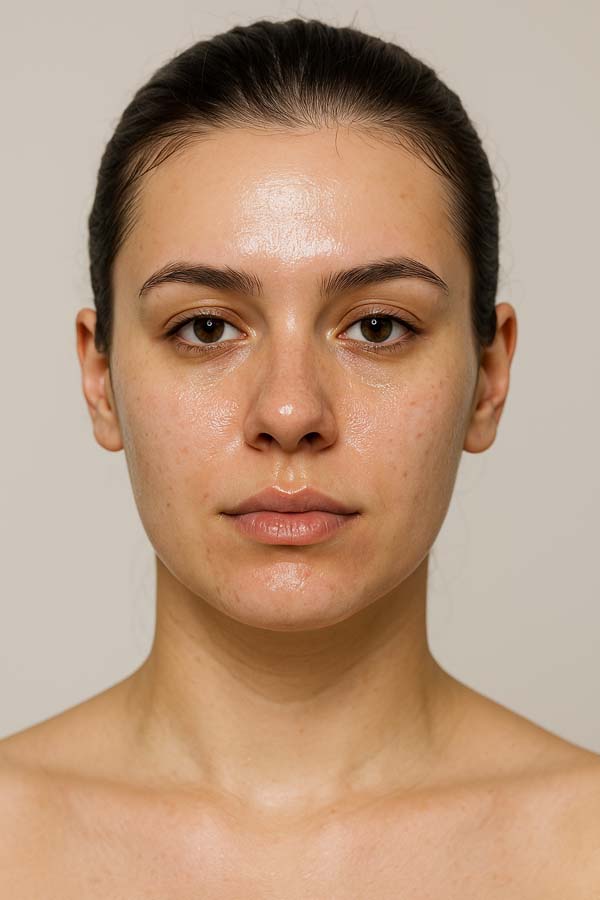 Fettige Haut produziert übermäßig Talg. Dadurch glänzt die Haut schnell, Poren wirken größer, und es kommt häufiger zu Mitessern oder Pickeln. Oft fühlt sich die Haut schwer und „ölig“ an, auch wenn sie eigentlich ausreichend Feuchtigkeit enthält.