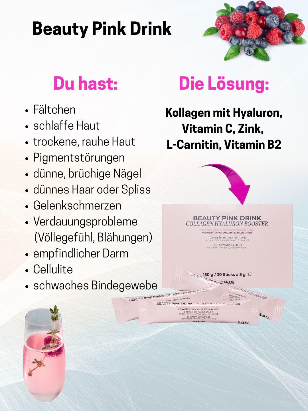 Mit dem Déesse Beauty Pink Drink unterstützt du deine Haut von innen – für Spannkraft, Feuchtigkeit und ein jugendliches Strahlen.